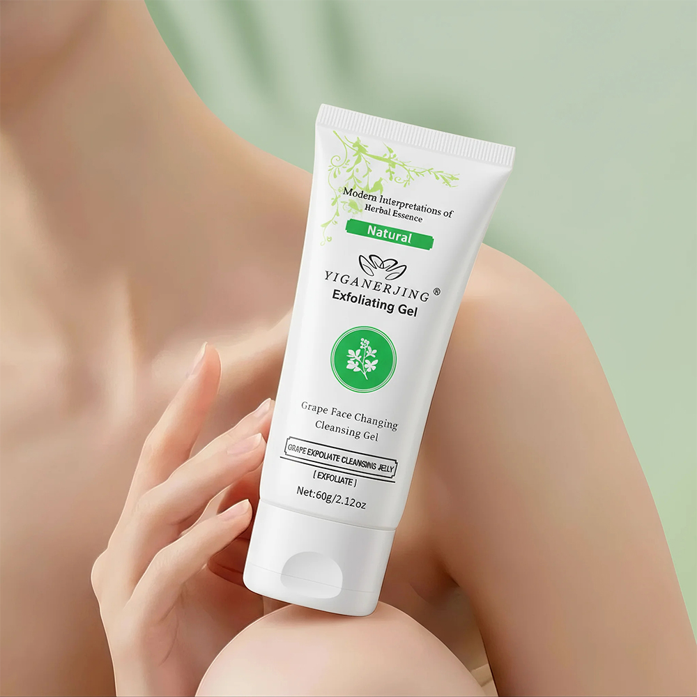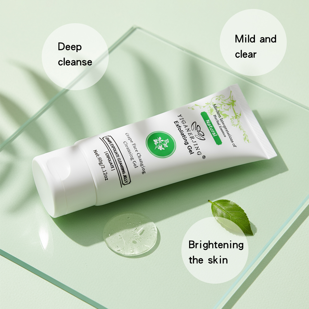 YIGANERJING Moisturizing Exfoliating Gel Cleanser - a 60g gentle formula that removes dead skin cells, revealing smoother, revitalized skin. With a refreshing fresh grass fragrance, it also provides moisturizing benefits for a radiant complexion.